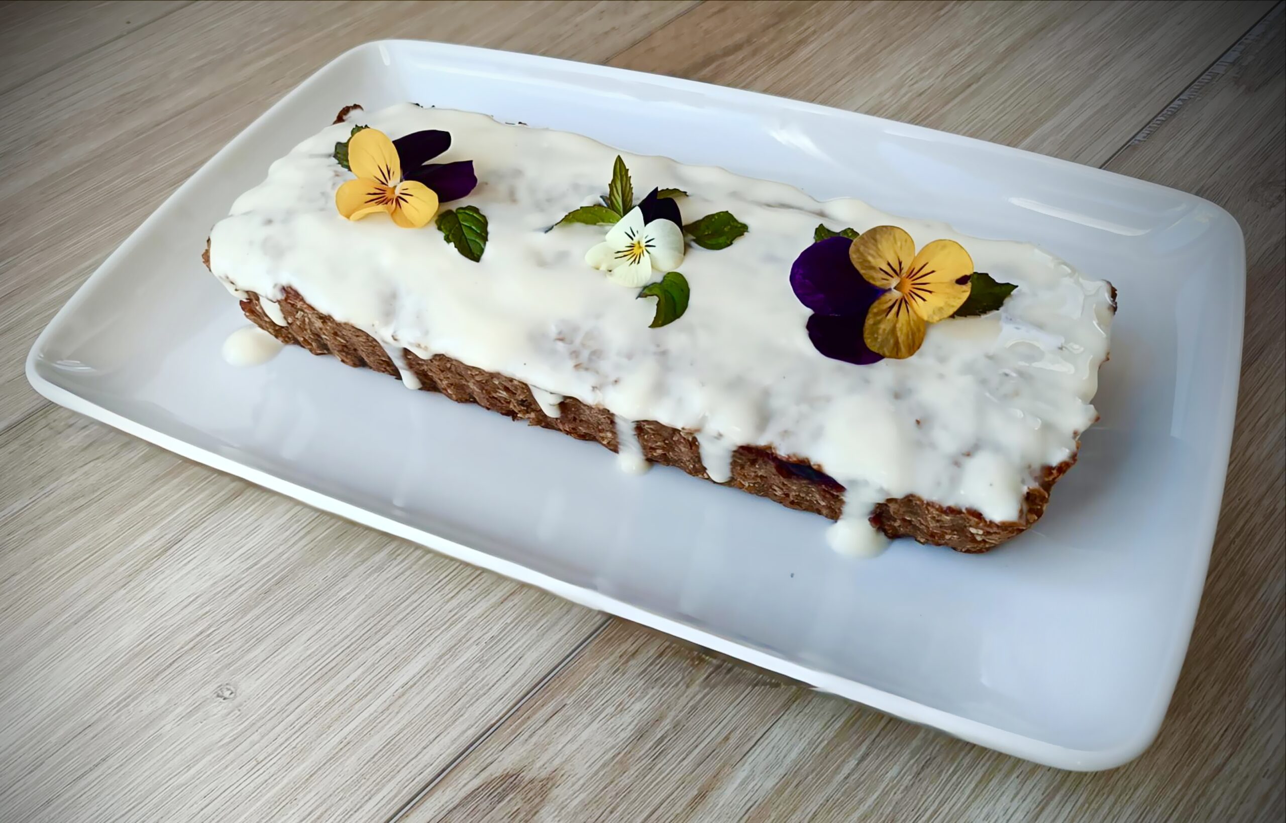 Zumzi încă nu a primit zahăr și dulciuri rafinate din comerț, așadar la fiecare aniversare și sărbătoare trebuie să improvizez ceva. Astăzi am improvizat o prăjitură de ovăz cu fructe și glazură.