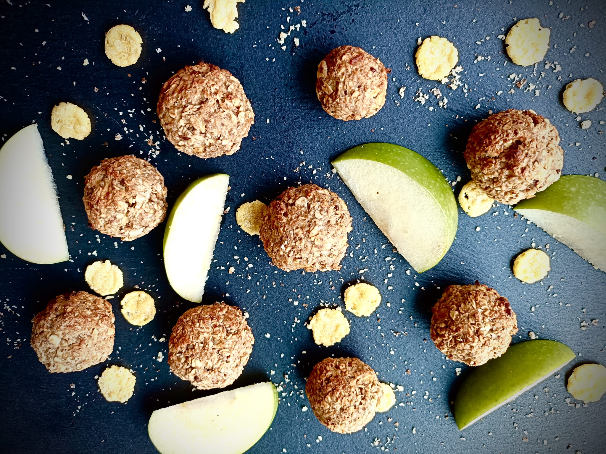 Biluțele acestea au fost o improvizație, de dragul de a salva de la moarte sigură 3 mere care stăteau în cămară. A fost o invenție genială și mă bucur că am măsurat ingredientele.